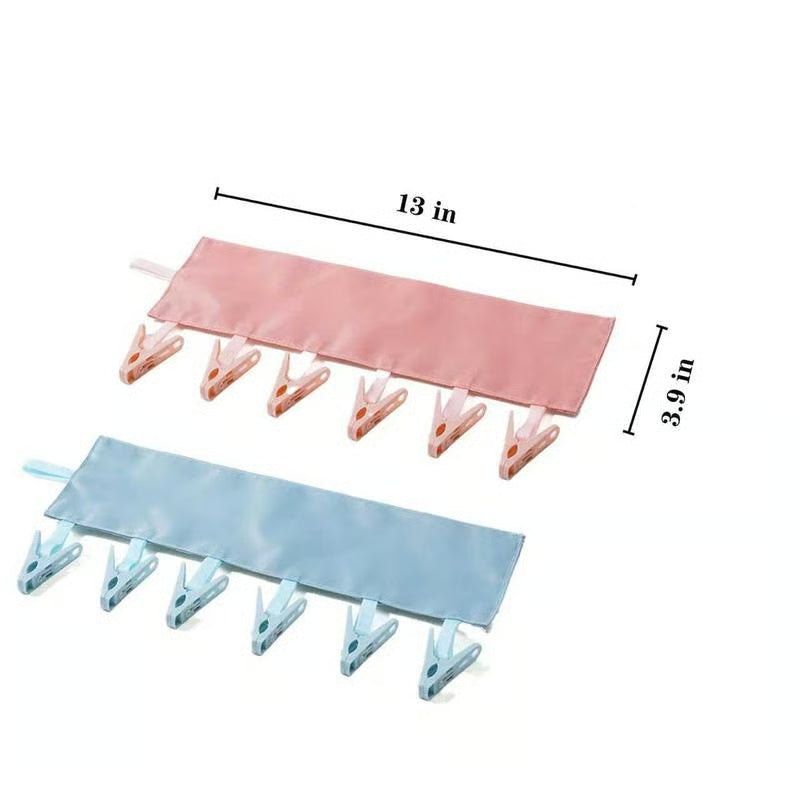 Lei av våte klær som hoper seg opp på hotellrommet eller i bobilen? Disse bærbare tørkeklemmene er designet for reisende som elsker å holde seg ryddige på farten! Med en sterk borrelåsstropp festes de enkelt til dusjstenger, håndklestativer eller klessnorer – perfekt for å henge opp sokker, undertøy, badetøy, hatter og mer. Kan foldes flatt, pakkes lett!