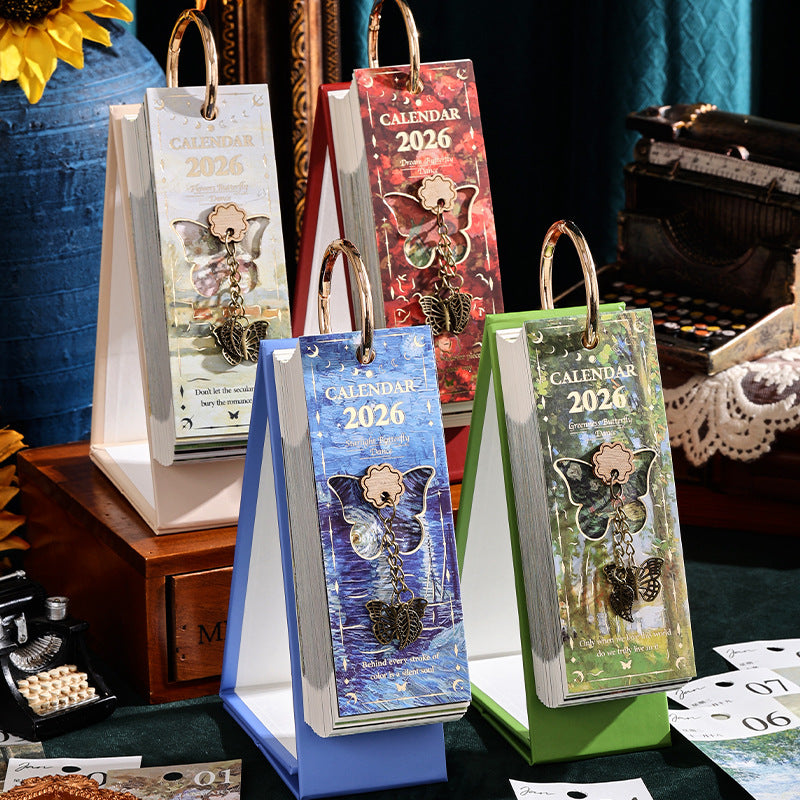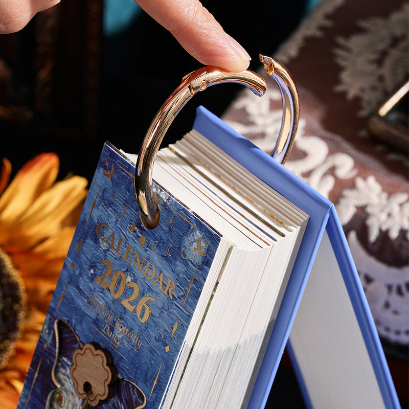 - 🦋 Handy Butterfly Pendant Accent — En smakfull liten anheng henger på lokket og gir kalenderen et håndverksmessig, representativt utseende. Det er et sjarmerende detalj som gjør kalenderen perfekt som en gjennomtenkt gave til kolleger, bokelskere eller kunstelskere.