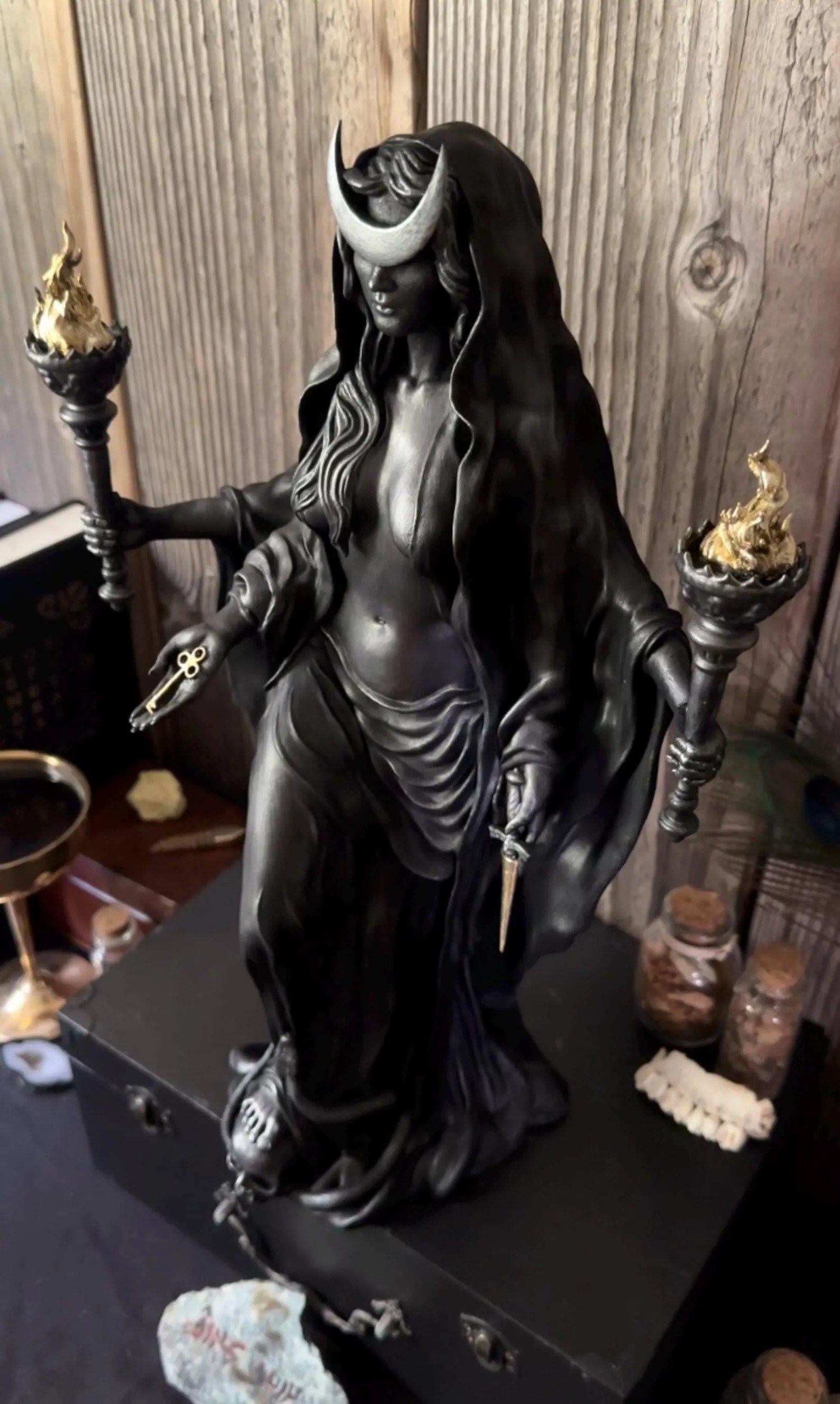 Denne statuen er mer enn kunst - den er et symbol på indre styrke, klarhet og forvandling. La Hekate vokte ditt hellige rom, vekke intuisjonen din og hjelpe deg med å åpne skjulte dører både i den ytre verden og i sjelen din.