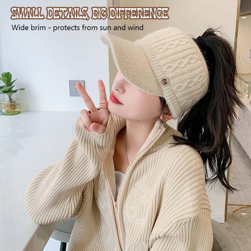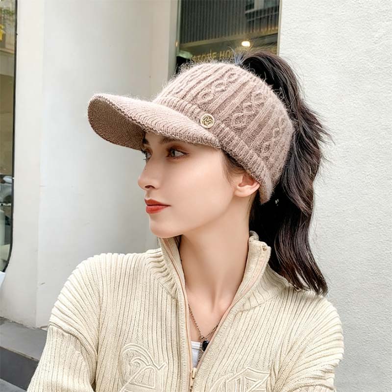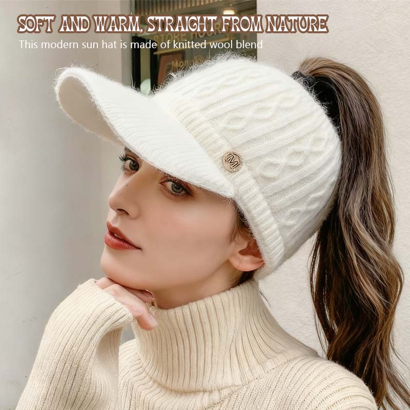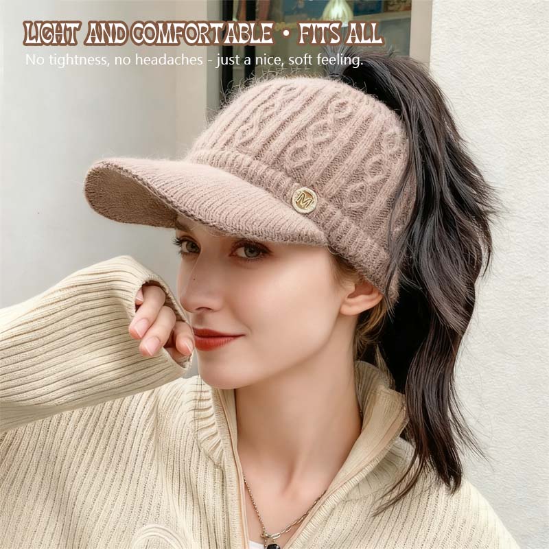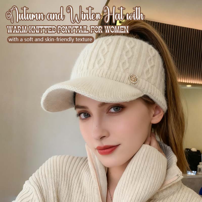 Høst- og vinterhatt med varm strikket hestehale for kvinner