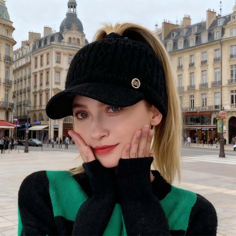 - 1 x Høst- og vinterhatt med varm strikket hestehale for kvinner