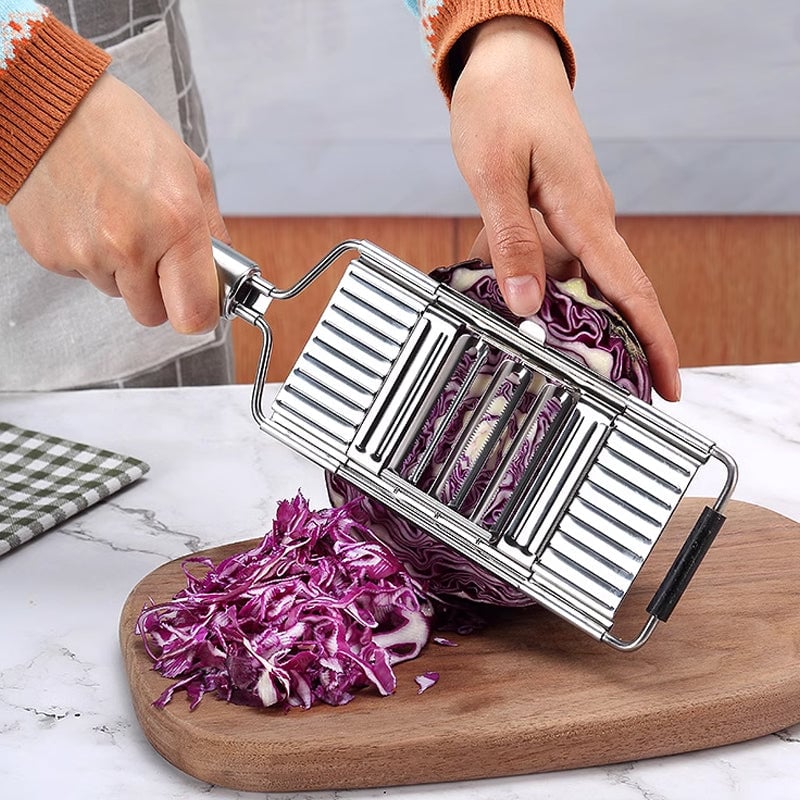 ✅ Kutt raskt og jevnt:Med skarpe kniver i rustfritt stål får du presise og jevne skiver uten problemer. Ikke mer treg hakking for hånd!